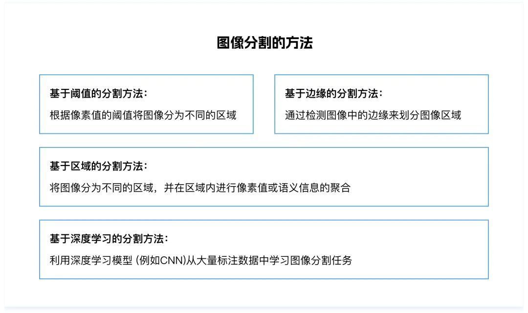 图像分割是将一张图像划分为多个不同区域的过程,每个区域具有相似的像素值或者语义信息。图像分制在计算机视觉领域有着广泛的应用,例如目标检测、自动着色、图像语义分割、医学影像分析、图像重构等。图像分割的方法可以分为几类: