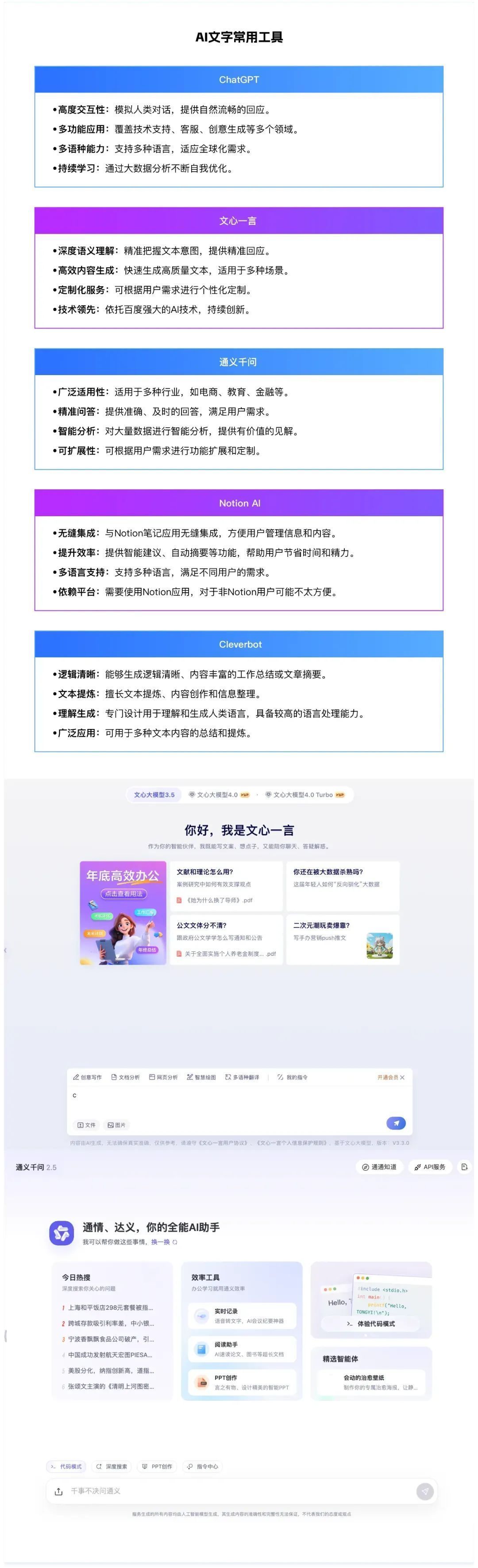 这些AI文字处理工具各具特色,能够满足不同用户的需求和应用场景。在选择合适的工具时,建议根据自己的实际需求、使用场景以及工具的特点和优势进行综合考虑。