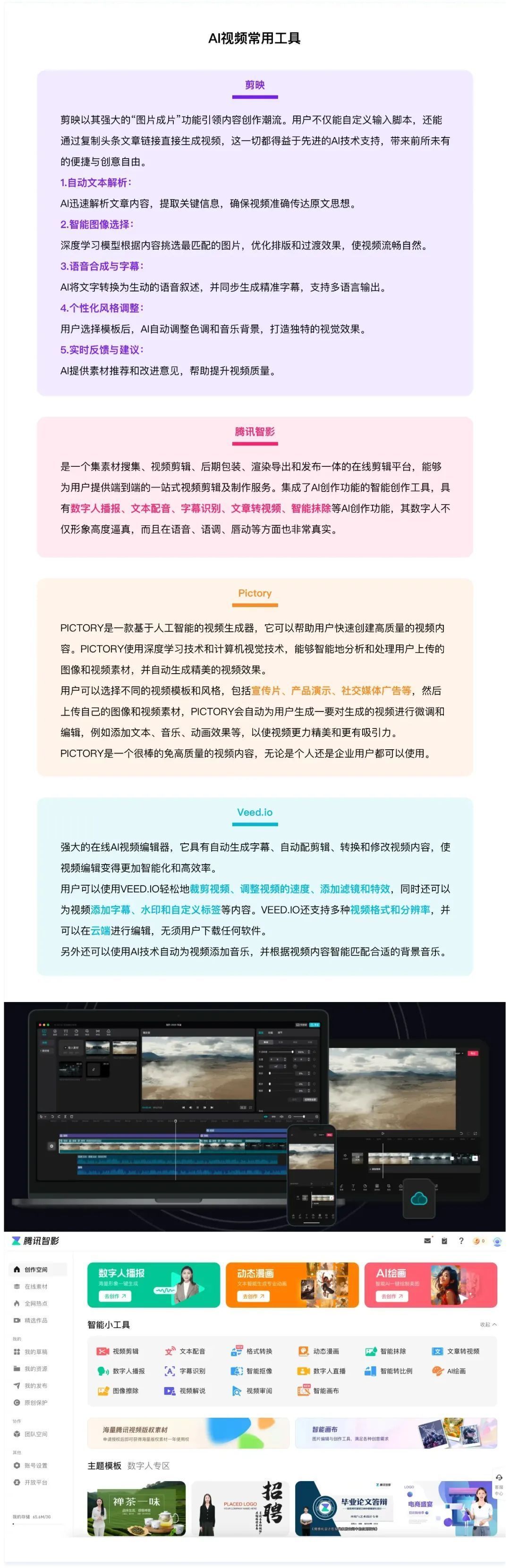 2.3 AI视频人工智能技术的飞速发展促进了AI视频生成器软件和AI视频编辑工具的爆炸式增长,人工智能可以根据用户提供的信息自动生成视频内容。