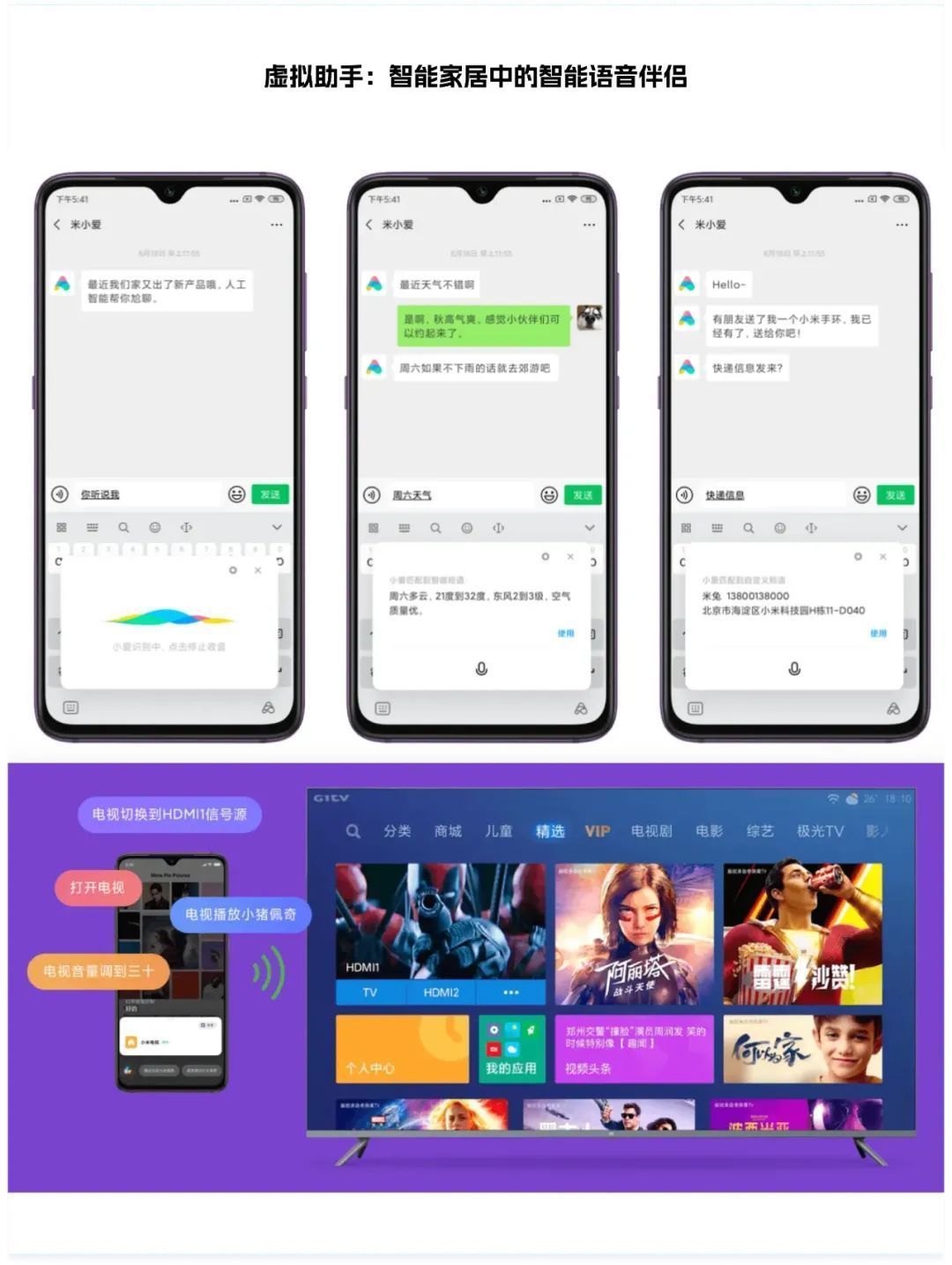 例如,在观影时,用户可以通过小爱同学查询电影信息、控制播放进度等;在购物时,用户可以通过小爱同学查询商品信息、比较价格等;在出行时,用户可以通过小爱同学查询路线、规划行程等。