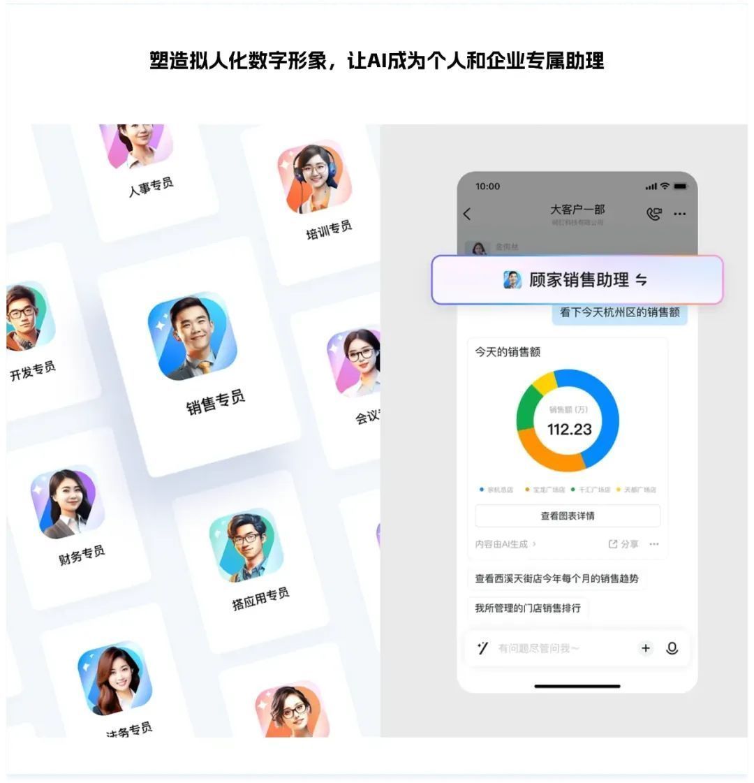 钉钉也为企业提供了丰富的企业级AI助理,如招聘AI助理、财务AI助理、报表AI助理等。这些AI助理能够利用企业所沉淀的知识库和业务数据,以对话的方式开展数据分析和洞察,帮助企业提高决策效率和准确性。