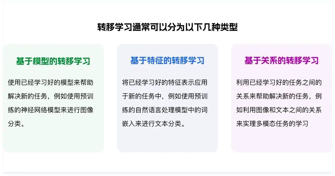 转移学习又称为迁移学习,它是一种将已经训练好的模型应用于新的领域或任务中的方法,可以提高模型的泛化能力和效率。转移学习是指利用已经学过的知识和经验来帮助解决新的问题或任务的方法,因为模型可以利用已经学到的知识来帮助解决新的问题,而不必从头开始学习。
